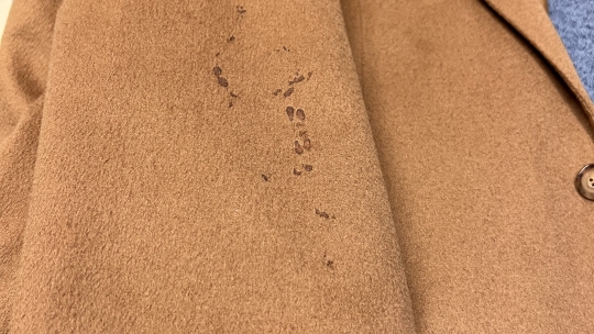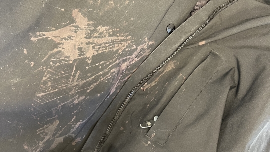 Vinterjakke med blod.